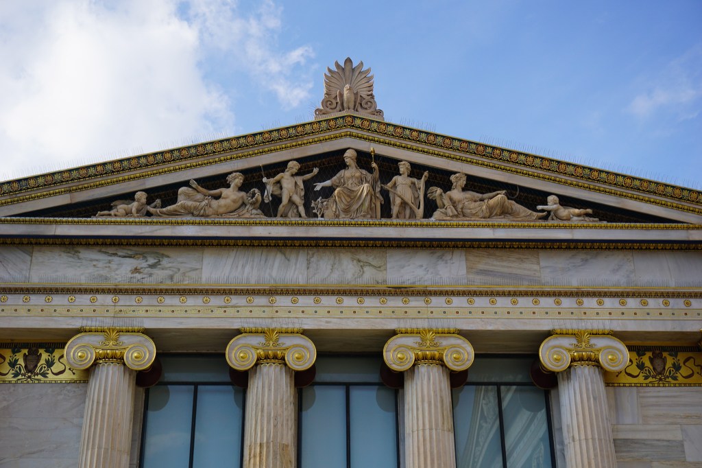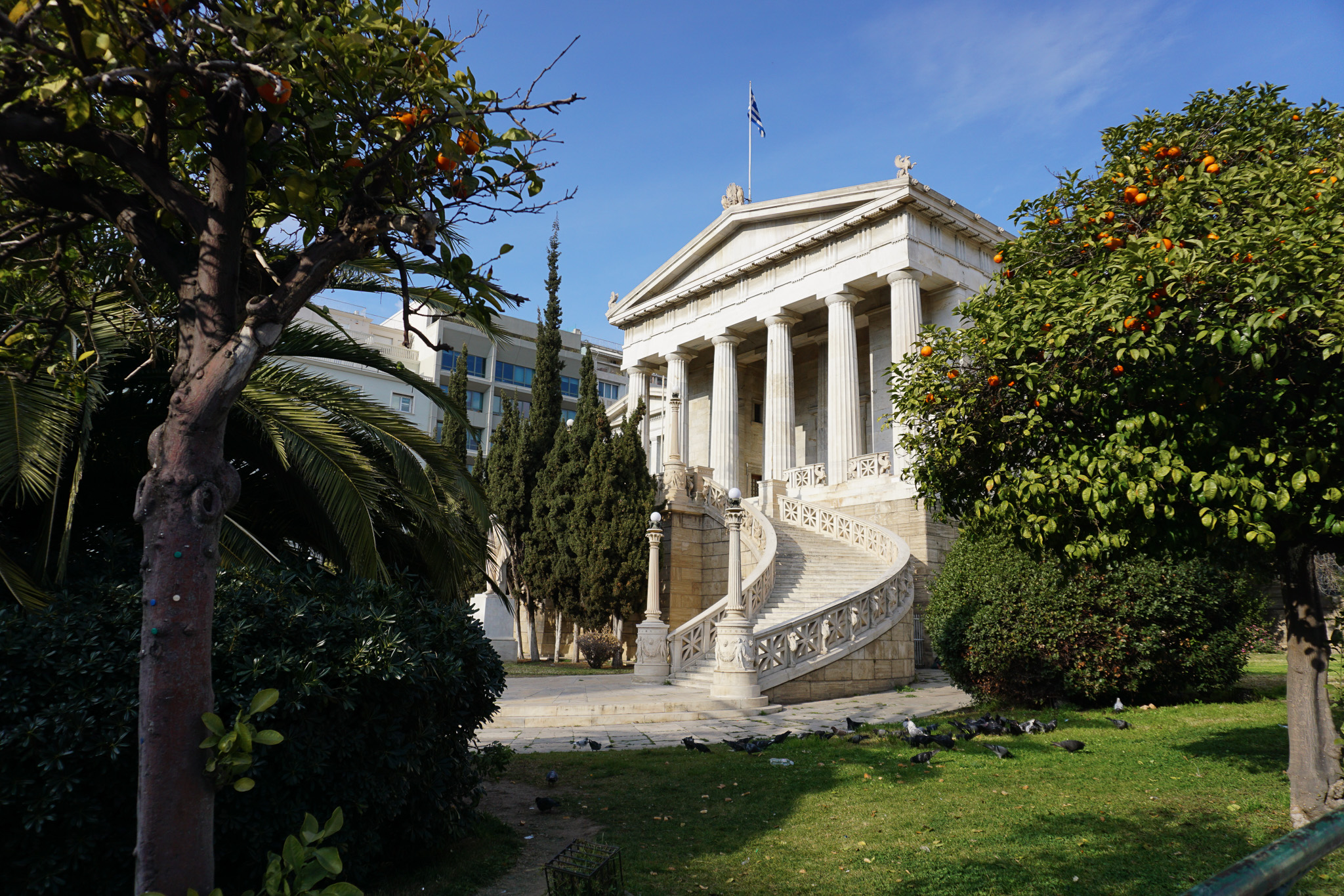 On my way there, I also stopped at the Academy of Athens – this had been a recommendation from my walking tour guide. The building is stunning – it’s a neoclassical icon in the city, of an elegance and grandeur that made my jaw drop. The building seems guarded by Athena and Apollo. Just next door, another beautiful building in the same style houses the National Library. It’s an homage to Greece’s ancient roots and wisdom.