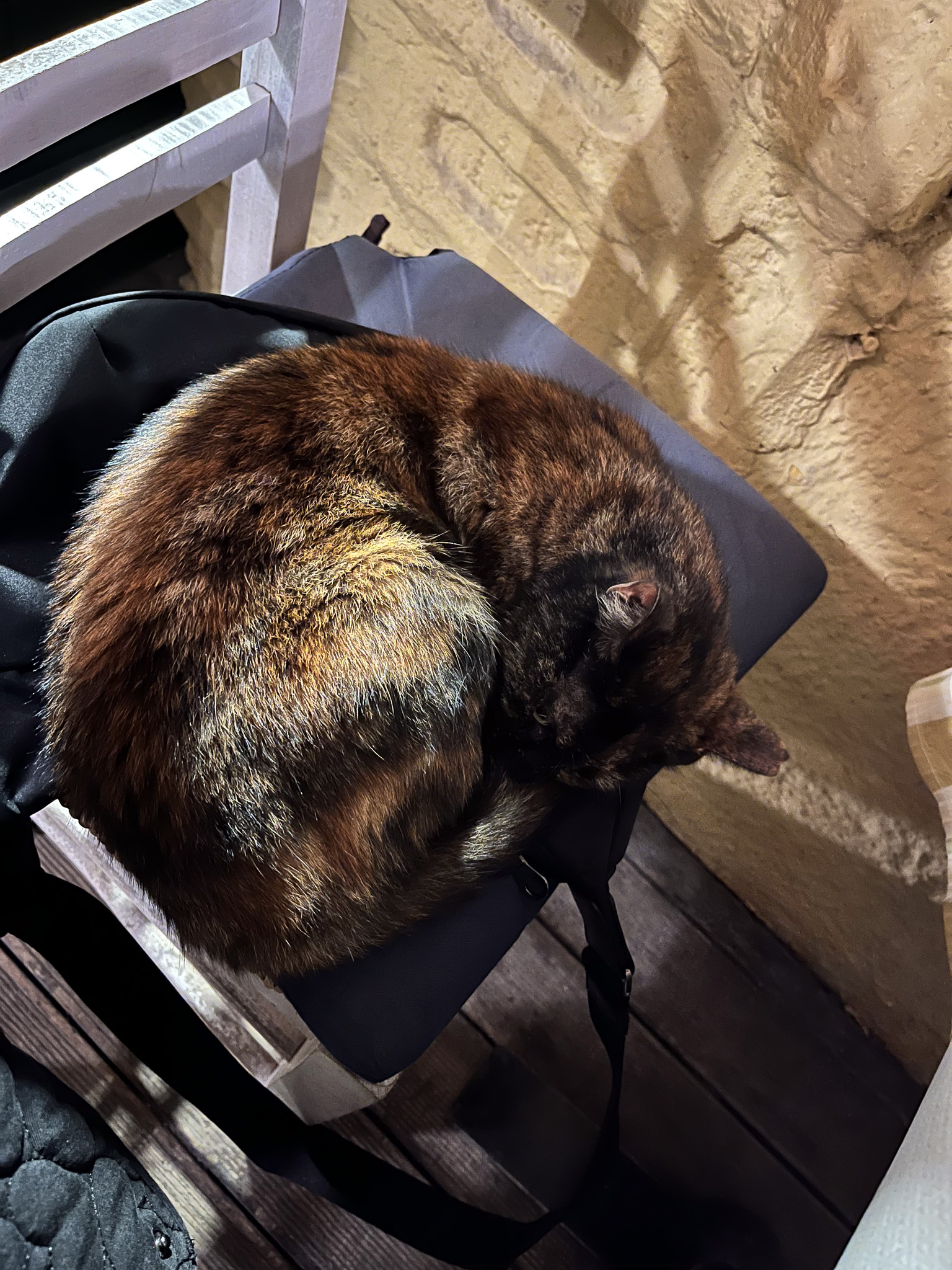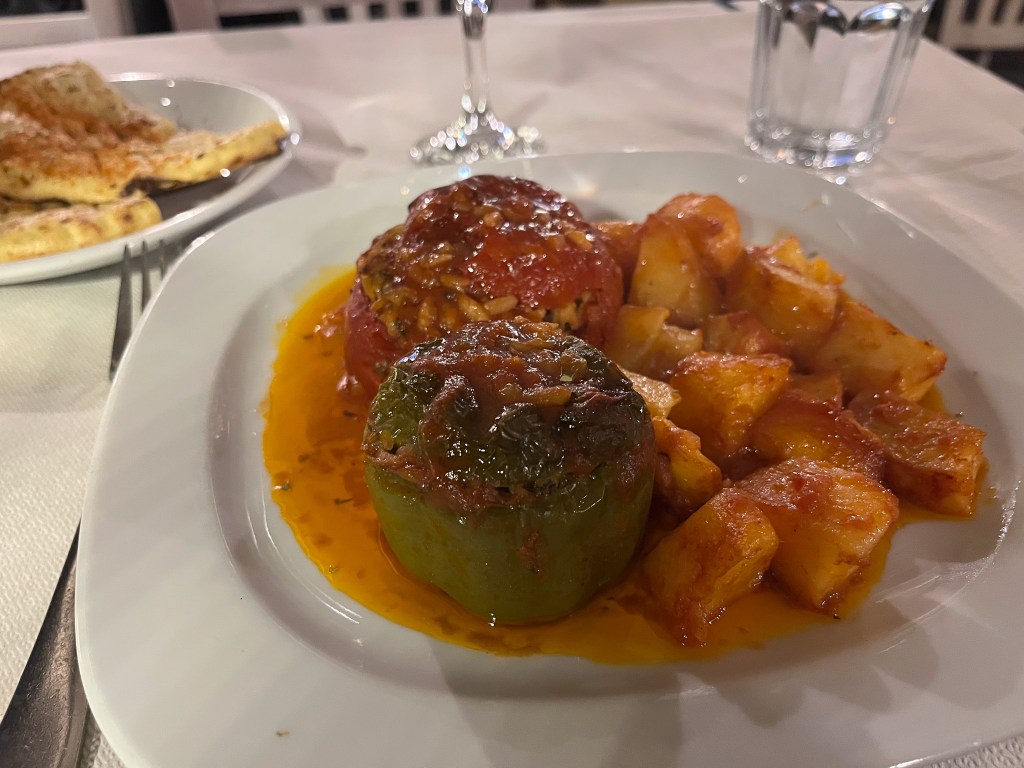 To end the day in the best possible way, I had a delicious dinner at the restaurant “Cave of Acropolis”, that I highly recommend. The staff was lovely, you have a view to the acropolis and there was traditional live music as well. I had Gemista, a traditional dish of stuffed roasted vegetables – just delicious. A cat also decided to keep me company, choosing the top pf my handbag to sleep on!