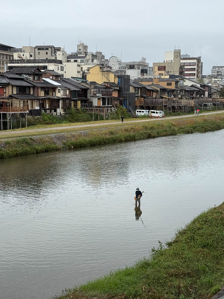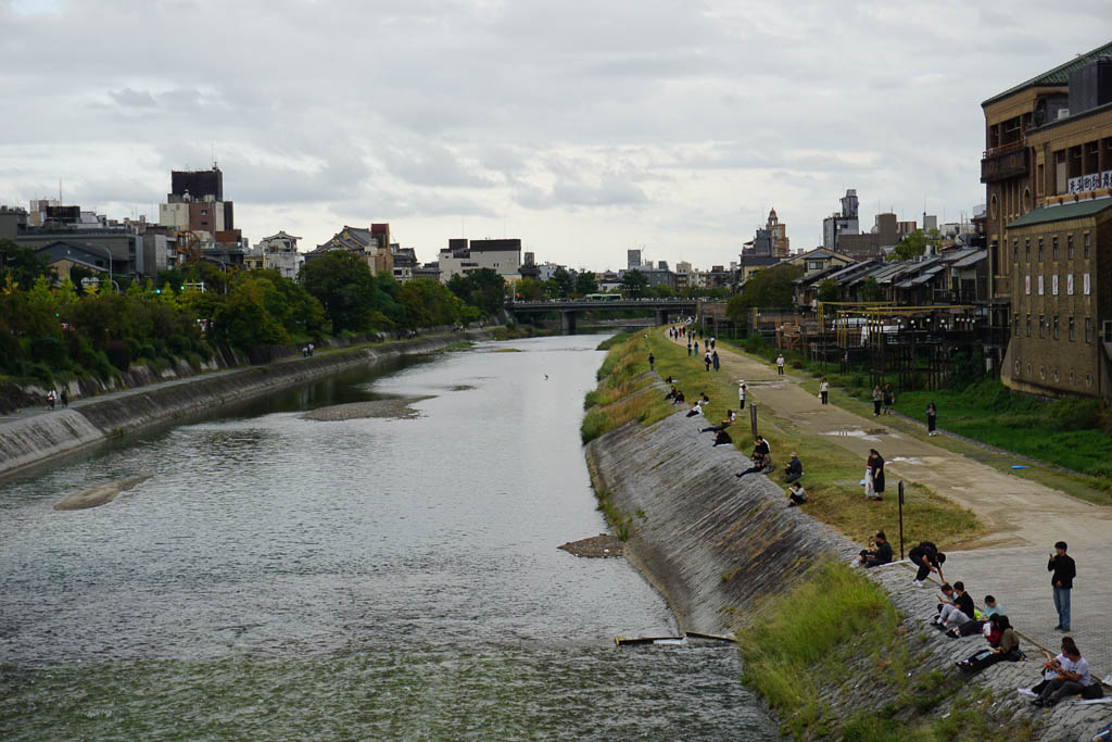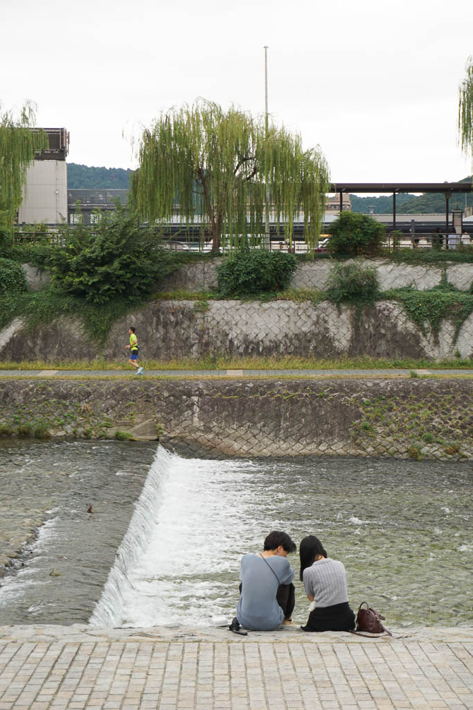 The margins of the river Kamogawa must be lovely in Spring and Summer. Even with the rain, locals were walking by it and finding dry patches to sit on for a while.