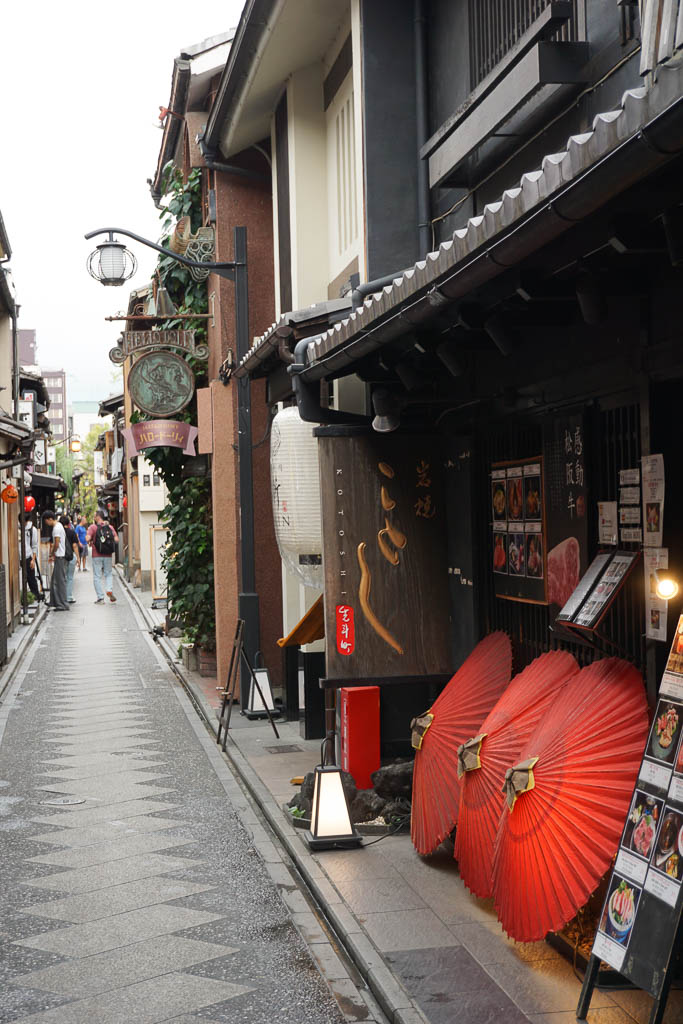 And Pontocho was fairly empty when I visited towards end afternoon – a historic, narrow, 500-meter long pedestrian alley that is parallel to Kamogawa River. I was enchanted by the traditional wooden buildings, the lanterns, the little sneak peeks I could get to the inside of some of these places.