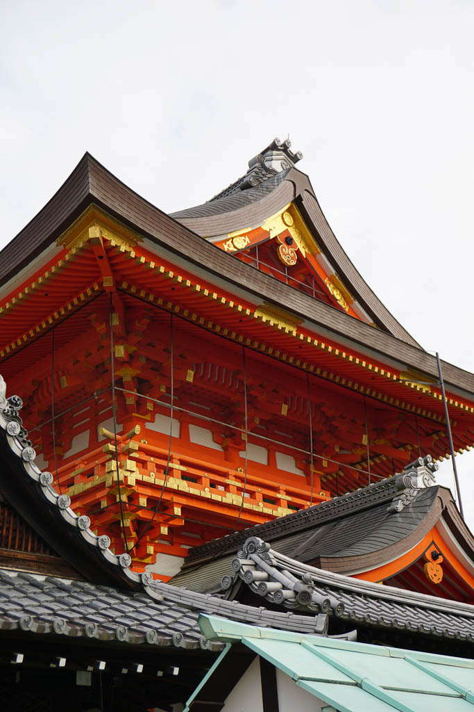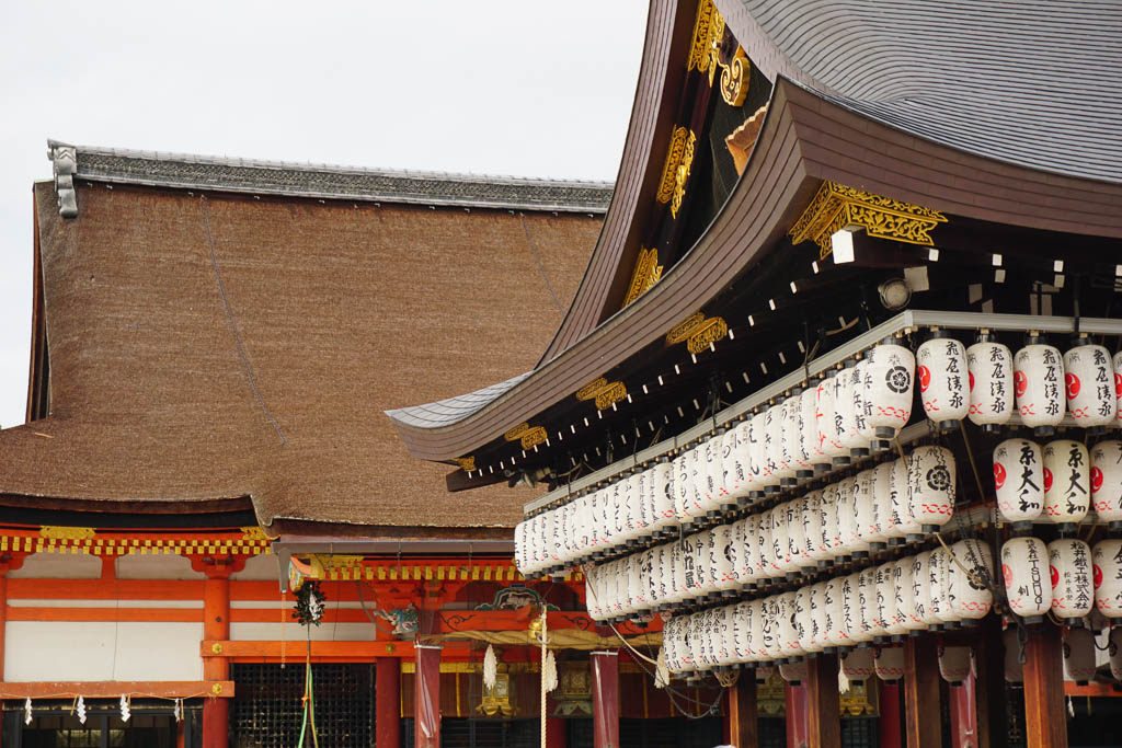 The Yasaka shrine is probably the most famous in Kyoto, located between popular Gion and Higashiyama districts. It was founded over 1350 years ago – the shrine’s main hall combines an inner sanctuary (called honden) and offering hall (haiden) into a single building, and in front there is a dance stage with hundreds of lanterns, bearing the name of a local business in return for a donation.