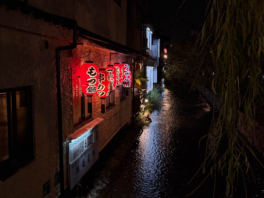 After the tea ceremony, I went back to real life. Changing my clothes going back out to get some dinner. It was rainy quite a bit, but I managed to see all of the streets becoming even more special, lantern lit, with the light reflecting on the rain water, creating a wonderful, quite otherworldly atmosphere.