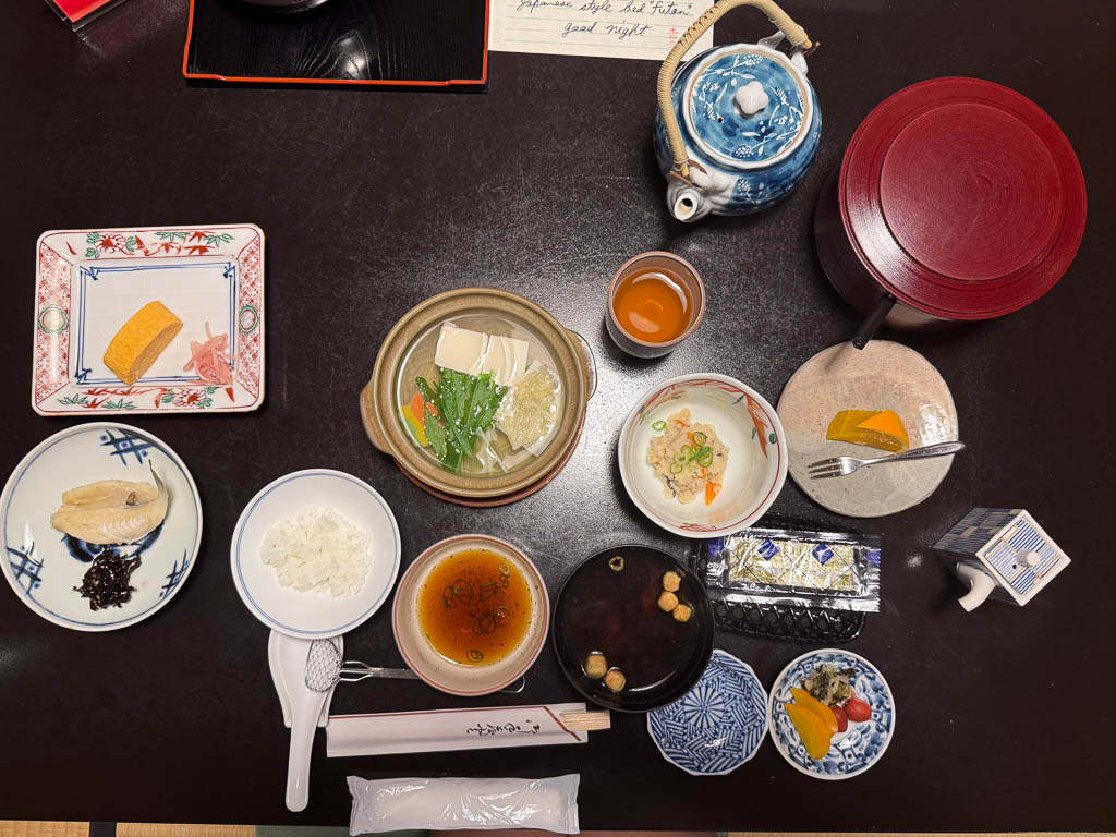 In the next morning, I was served a traditional Japanese breakfast in my room. I was given the choice between a Japanese or a Western breakfast, and I was commited to Japanese only – so I got served rice, noodles, fish… it was too much for me so early in the morning, and this is definitely not something I’d usually do. They also took time to explain to me how to eat everything,a dn what should be mixed with what… as it was very overwhelming to see all of those little plates, not even knowing at first glance what it was all about. Whilst the food was good, I cannot say if I’ll ever opt for a Japanese breakfast ever again… fish and noodles in the morning are really too much for me!