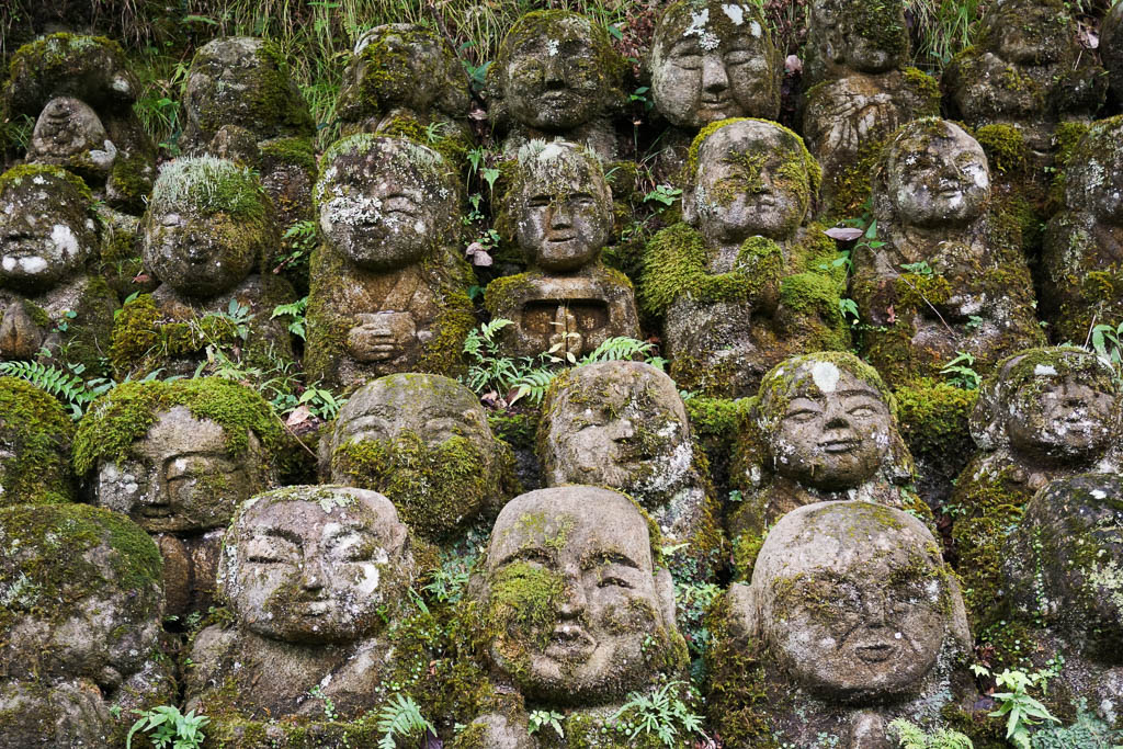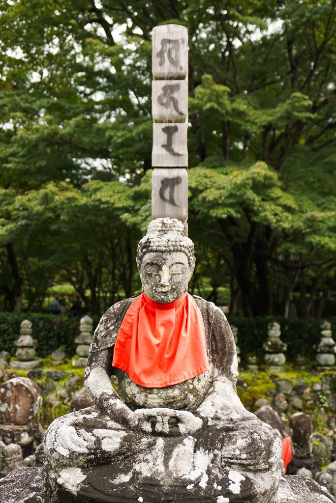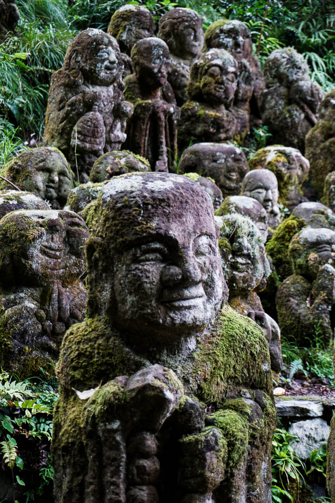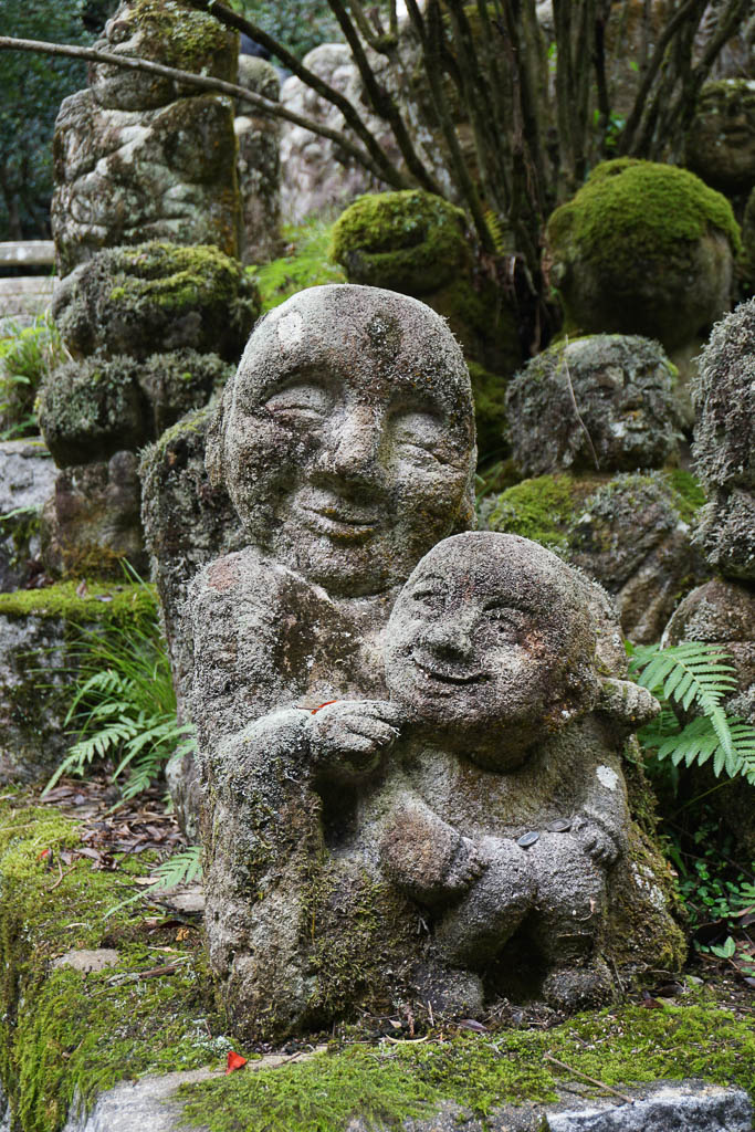 Yet, it’s wonderful. It could be compared in many ways to Adashino Nenbutsuji, but whilst the latter is a lot more solemn, this one is almost lighthearted. There are over one thousand Rakan (Buddha disciples) statues. These were carved by amateur volunteers in the 1980s under the guidance of a head priest who was also a master sculptor. Precisely because of this, you find some modern representations – I noted a couple that made me smile – one holding a pug and another one with a camera.