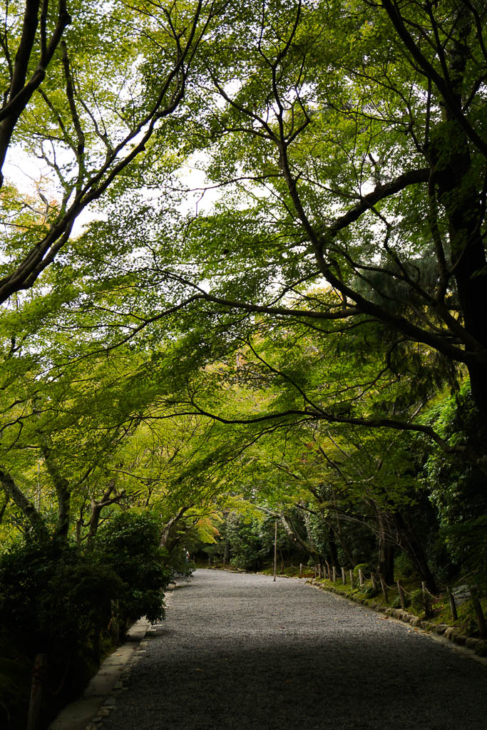 I walked North, leaving those crowds behind. Surrounded by heavenly nature, I was leaving that bad taste in my mouth. Embraced by greens, breathing the purity of air so nicely maintained by all of that forest. Until I came across the entrance to the Jōjakkōji Temple. It was not planned for me to visit. But something pulled me in, perhaps the fact that it was so empty. I paid my ticket. And wow. The peace. The quiet. A temple that seemed to have been built by Nature, not by humans. Grounds covered in mossy tapestry, paths framed by maple trees, still green but changing.
