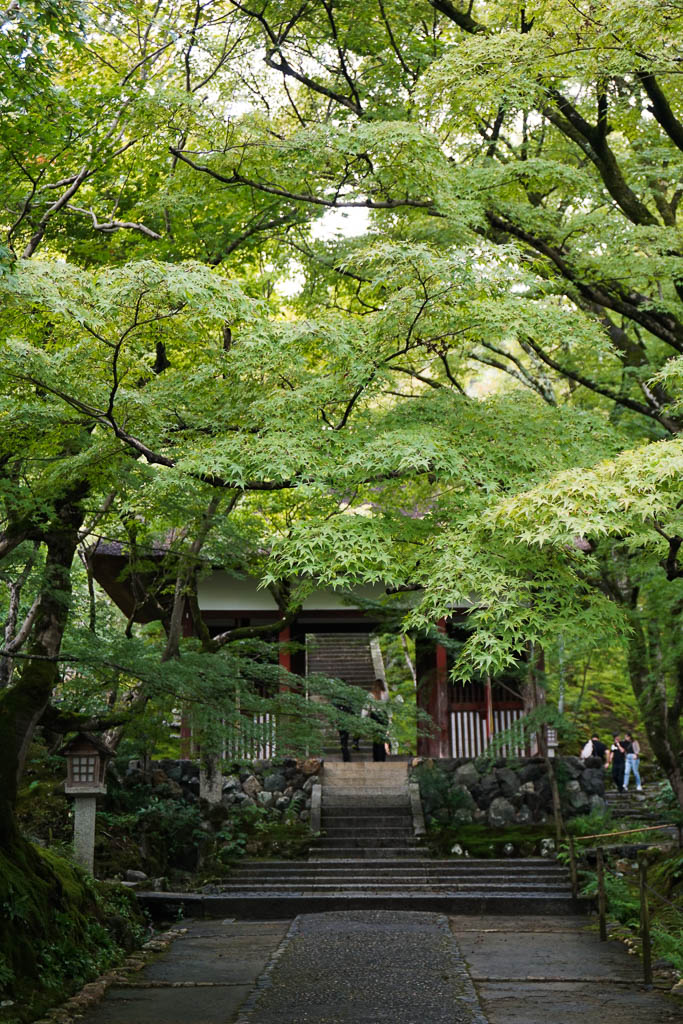 I walked North, leaving those crowds behind. Surrounded by heavenly nature, I was leaving that bad taste in my mouth. Embraced by greens, breathing the purity of air so nicely maintained by all of that forest. Until I came across the entrance to the Jōjakkōji Temple. It was not planned for me to visit. But something pulled me in, perhaps the fact that it was so empty. I paid my ticket. And wow. The peace. The quiet. A temple that seemed to have been built by Nature, not by humans. Grounds covered in mossy tapestry, paths framed by maple trees, still green but changing.