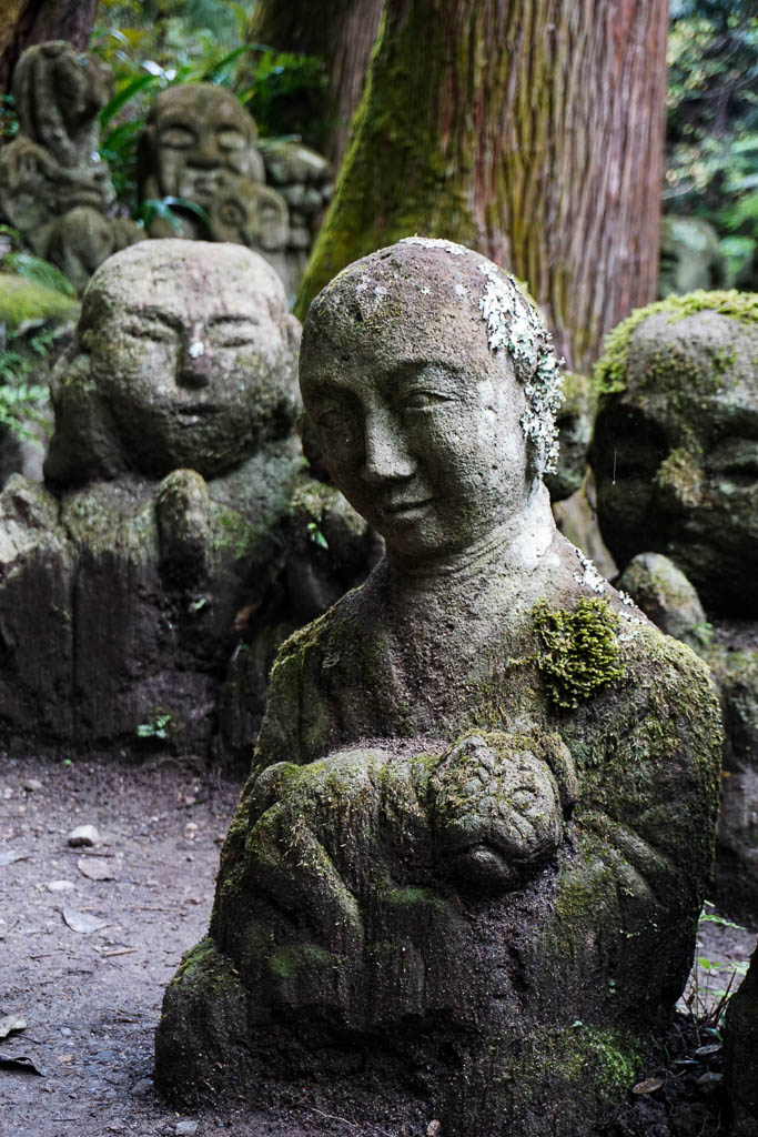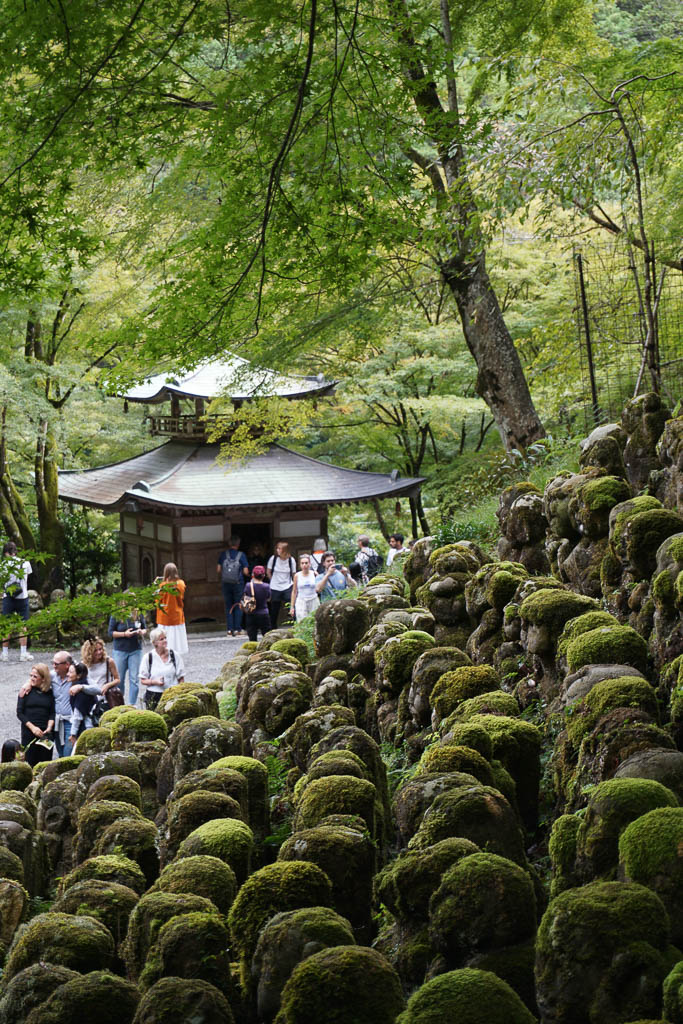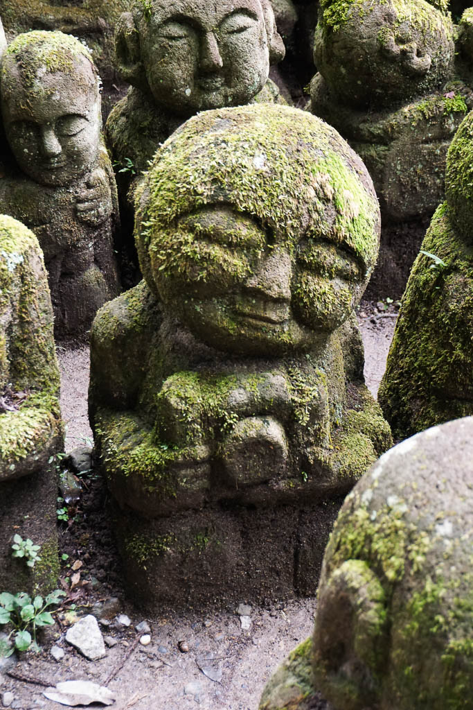 Yet, it’s wonderful. It could be compared in many ways to Adashino Nenbutsuji, but whilst the latter is a lot more solemn, this one is almost lighthearted. There are over one thousand Rakan (Buddha disciples) statues. These were carved by amateur volunteers in the 1980s under the guidance of a head priest who was also a master sculptor. Precisely because of this, you find some modern representations – I noted a couple that made me smile – one holding a pug and another one with a camera.