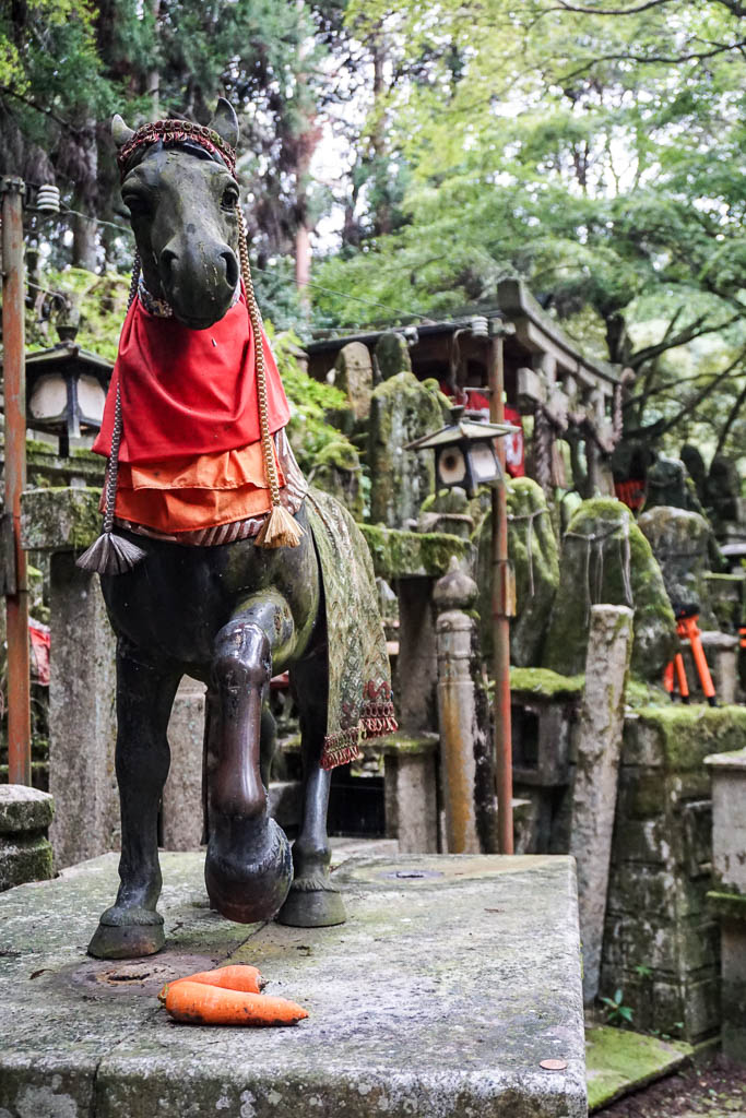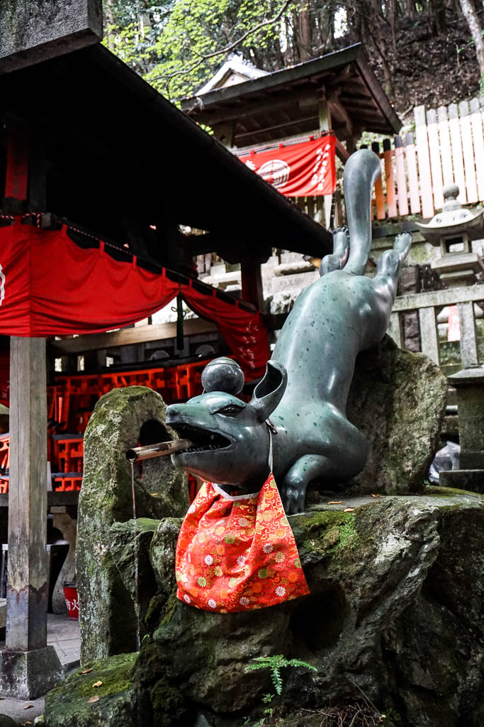 I don’t know what it is that I adore more about Shinto. The undeniable connection with nature. The Kamis, their presence, their spirits. Or the elevation of animals to sacredness. We’ve spoken about the deer in Nara, from woodland munchers to sacred messengers. We’ve also talked about the looking back rabbit of Uji, the carp in the shrine in Hiroshima. And of course the fox – katsune. We’ve encountered them first in Tokyo at the Nezu Shrine – and now in the world famous Fushimi Inari.