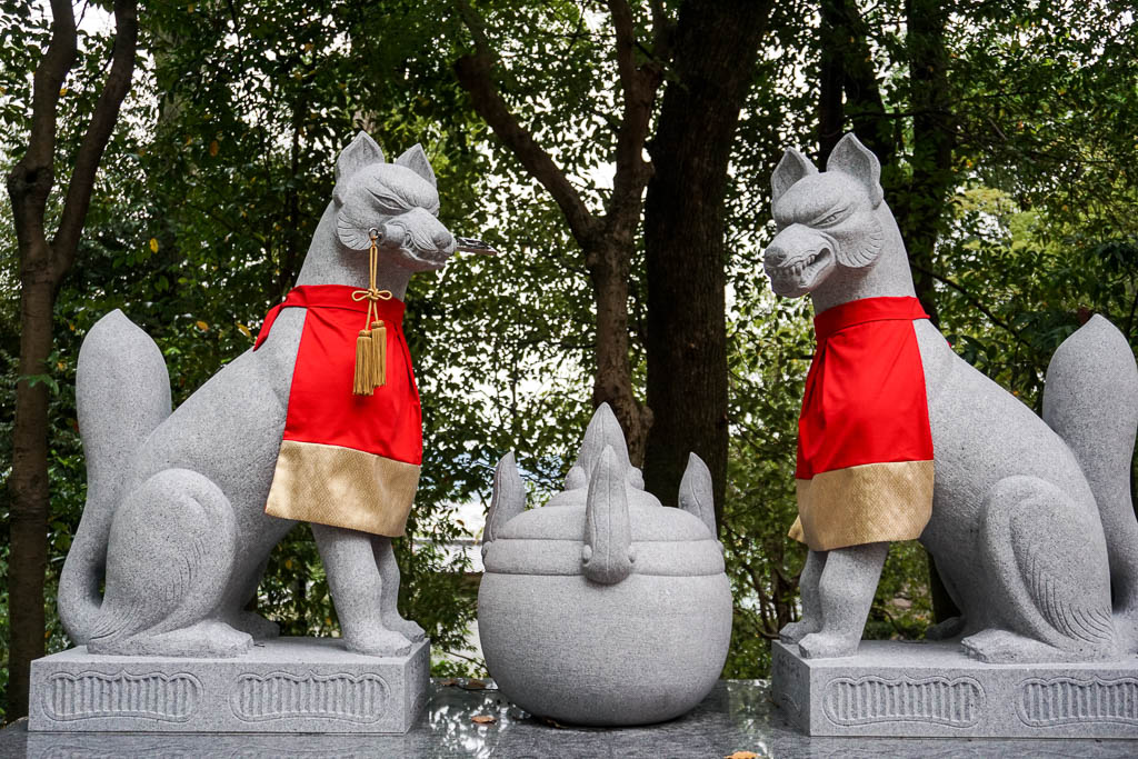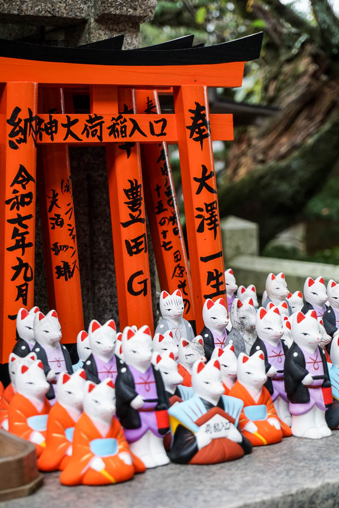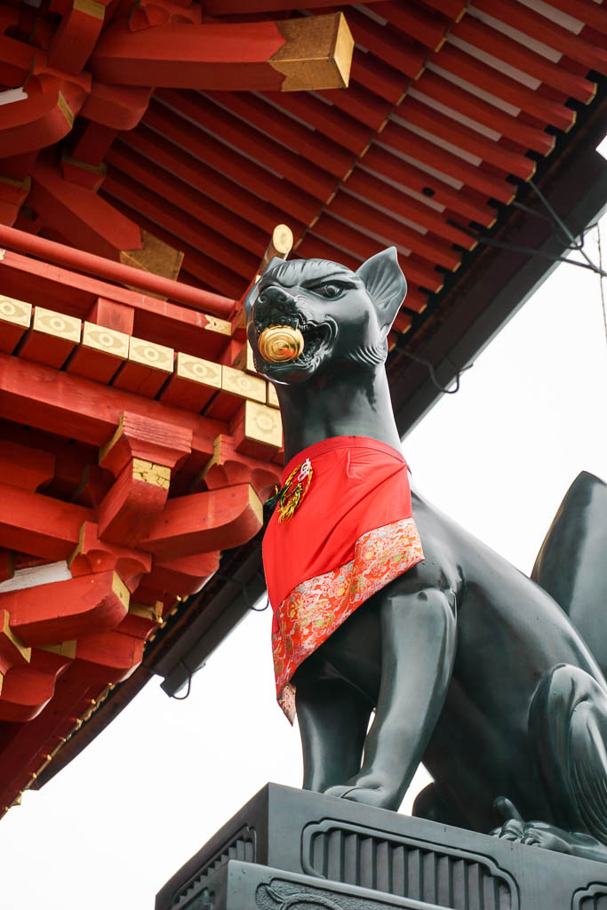 I don’t know what it is that I adore more about Shinto. The undeniable connection with nature. The Kamis, their presence, their spirits. Or the elevation of animals to sacredness. We’ve spoken about the deer in Nara, from woodland munchers to sacred messengers. We’ve also talked about the looking back rabbit of Uji, the carp in the shrine in Hiroshima. And of course the fox – katsune. We’ve encountered them first in Tokyo at the Nezu Shrine – and now in the world famous Fushimi Inari.