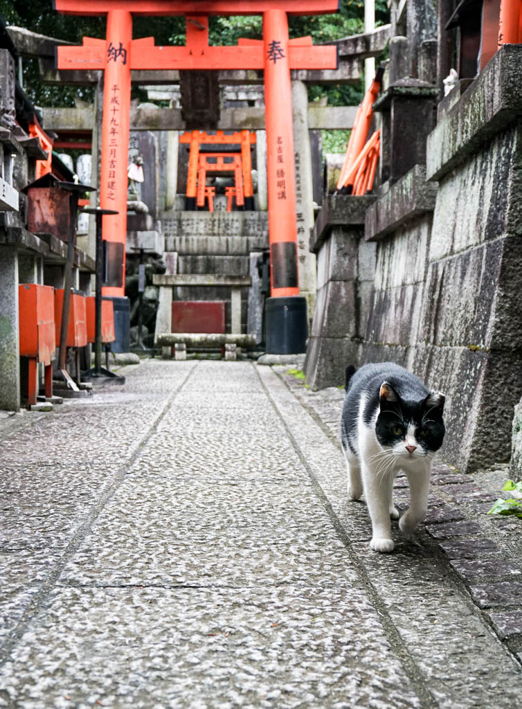 As I was just approaching the base, I spotted a black and white cat (if you’ve been reading my posts you know I’m crazy about felines) and managed to take a photo of it with some torii in the background. Cats have historically protected so many places – in Europe particularly from the plague, and in Japan they were used to protect the rice stores and sacred texts from rodents. This cat though definitely didn’t seem like he would even chase a rat if it saw one… it had that air of domesticity only smug city cats have learned to develop.