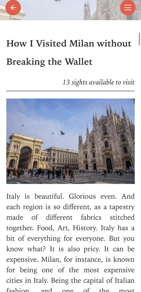 It takes the travel articles you already read on this blog and converts them into interactive mobile apps that you can use offline on your phone or tablet. Once you’ve download the app (available in both App Store and Google Play), here’s what you get: