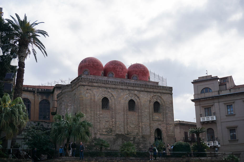 Let’s change gears – for that you’ve got San Cataldo church. The opposite of the excess of the two previous ones. It’s stark, blunt, austere. The iconic red domes feel closer to North Africa than Italy, reminding you that Palermo once sat at the crossroads of the Islamic world and Norman rule. But the Normans… they were open to the aesthetics of others, and this is a perfect example of that, with the muslim influence very clear in the lines of this church.