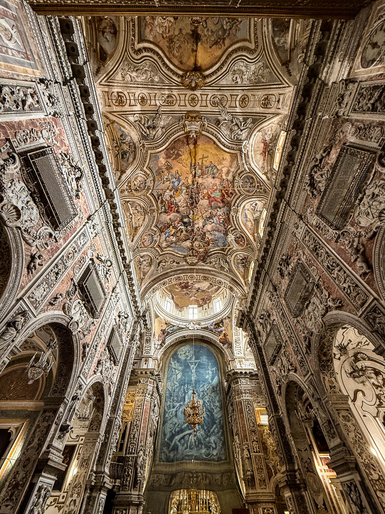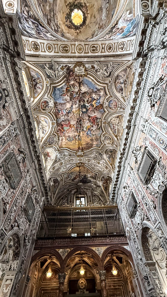 But let’s get back to shouting. If Cataldo was about restraint, you will stand in front of Case Professa and think the same. The exterior is simple, bare. Almost boring. And yet, once you enter, it slaps you in the face in the most incredible way. This is a full Jesuit Brroque spectacle. It borders on excess. Most times, Palermo does not do subtle. It’s loud.